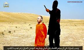 O homem fala com sotaque britânico e avisa que o grupo continuará a matar reféns enquanto Obama não interromper os ataques aéreos contra militantes na Síria e no Iraque. Em seguida, ele decapita o jornalista.